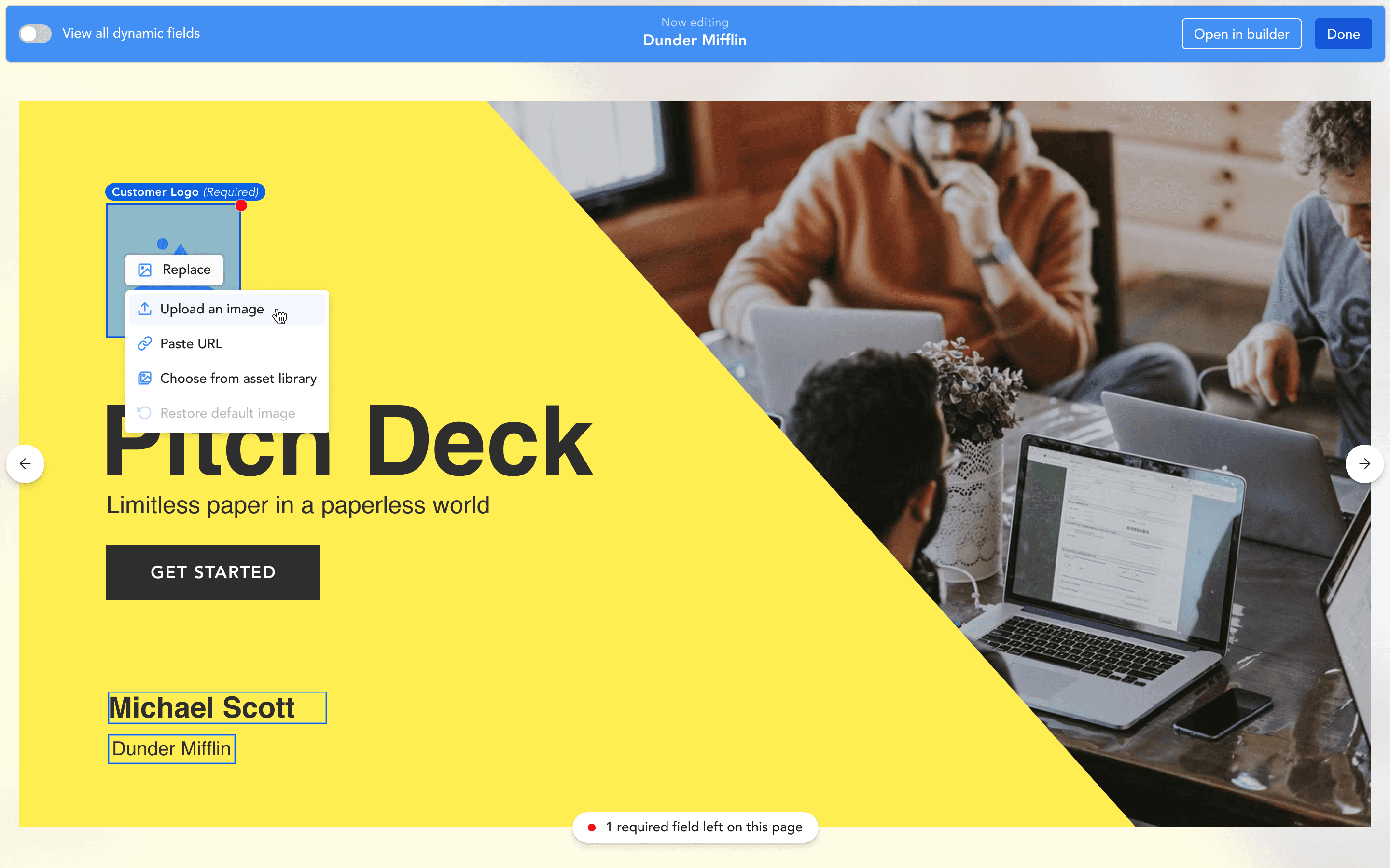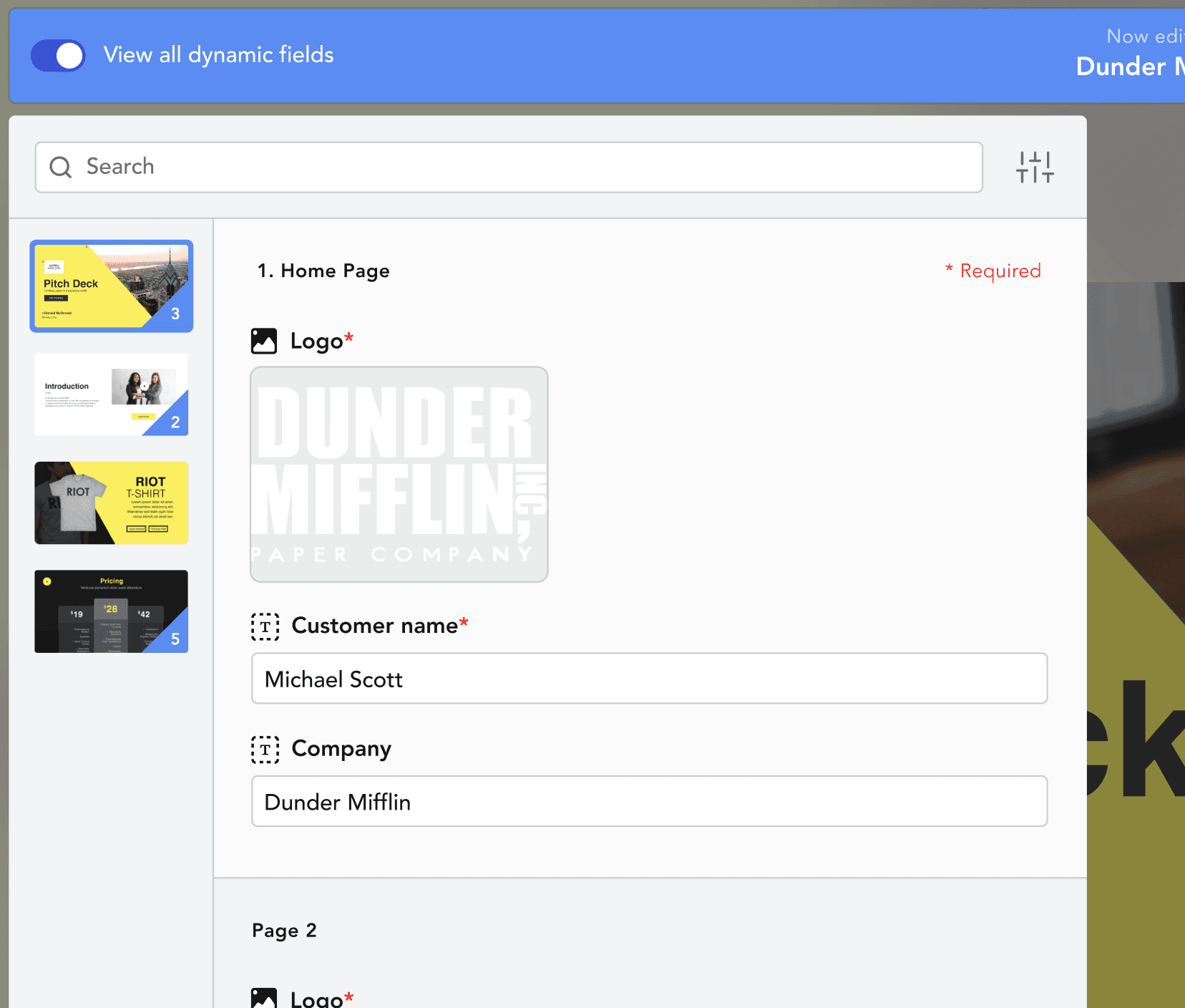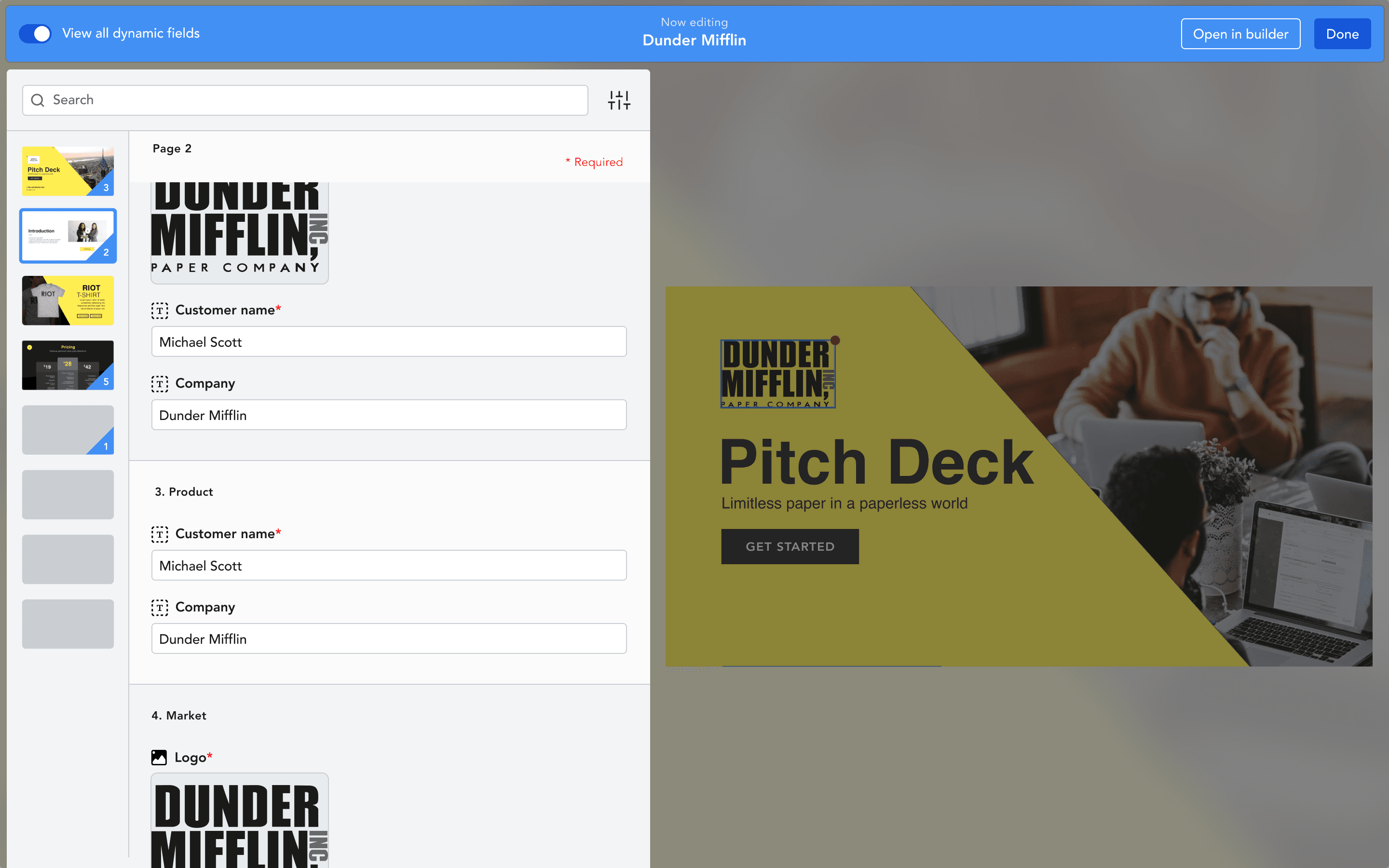 "The 'View All Dynamic Fields' panel should be open by default to allow for quicker personalization."
