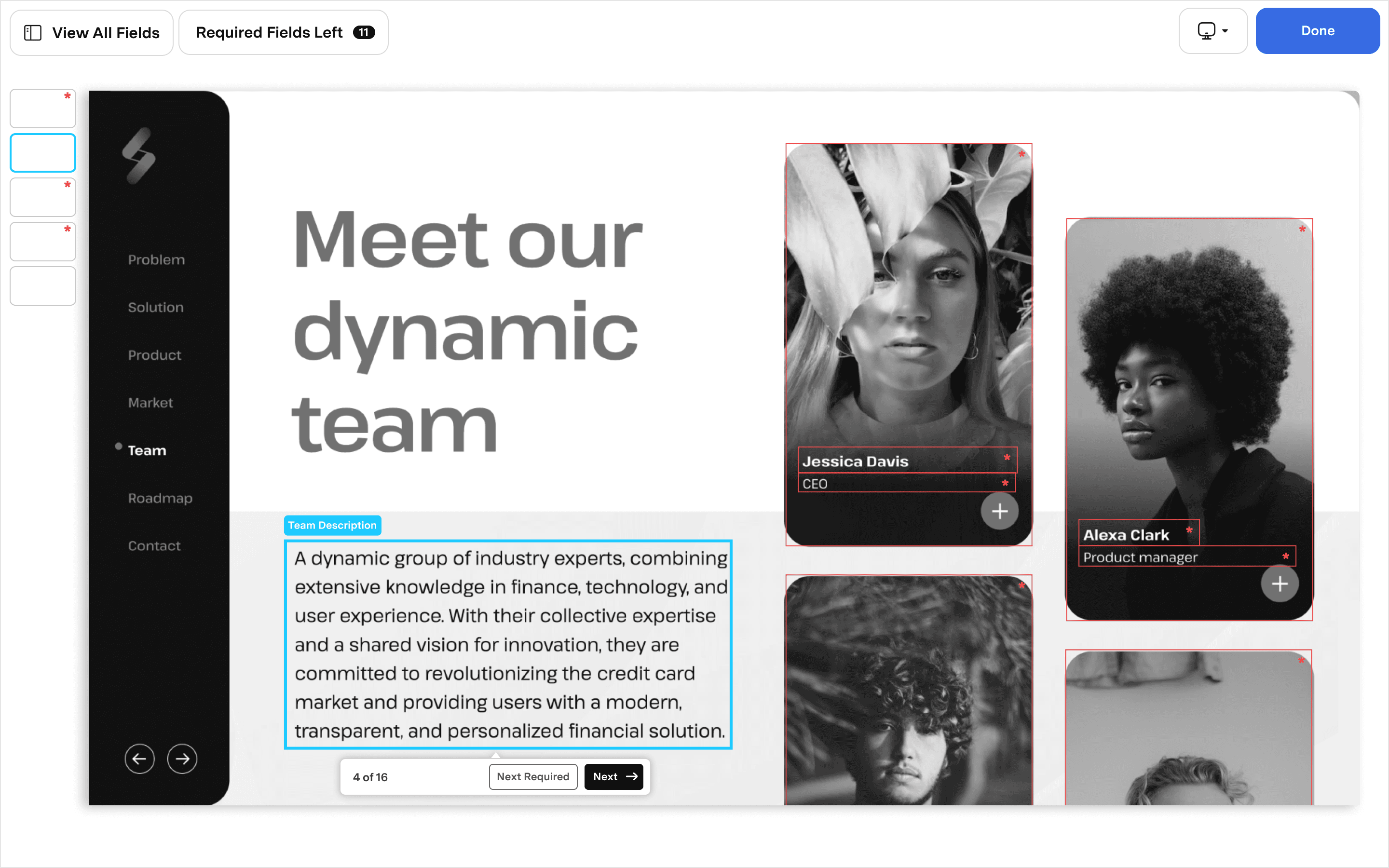 At a glance users can see how many required fields are left to fill out and they can navigate to them quickly by clicking this toggle.