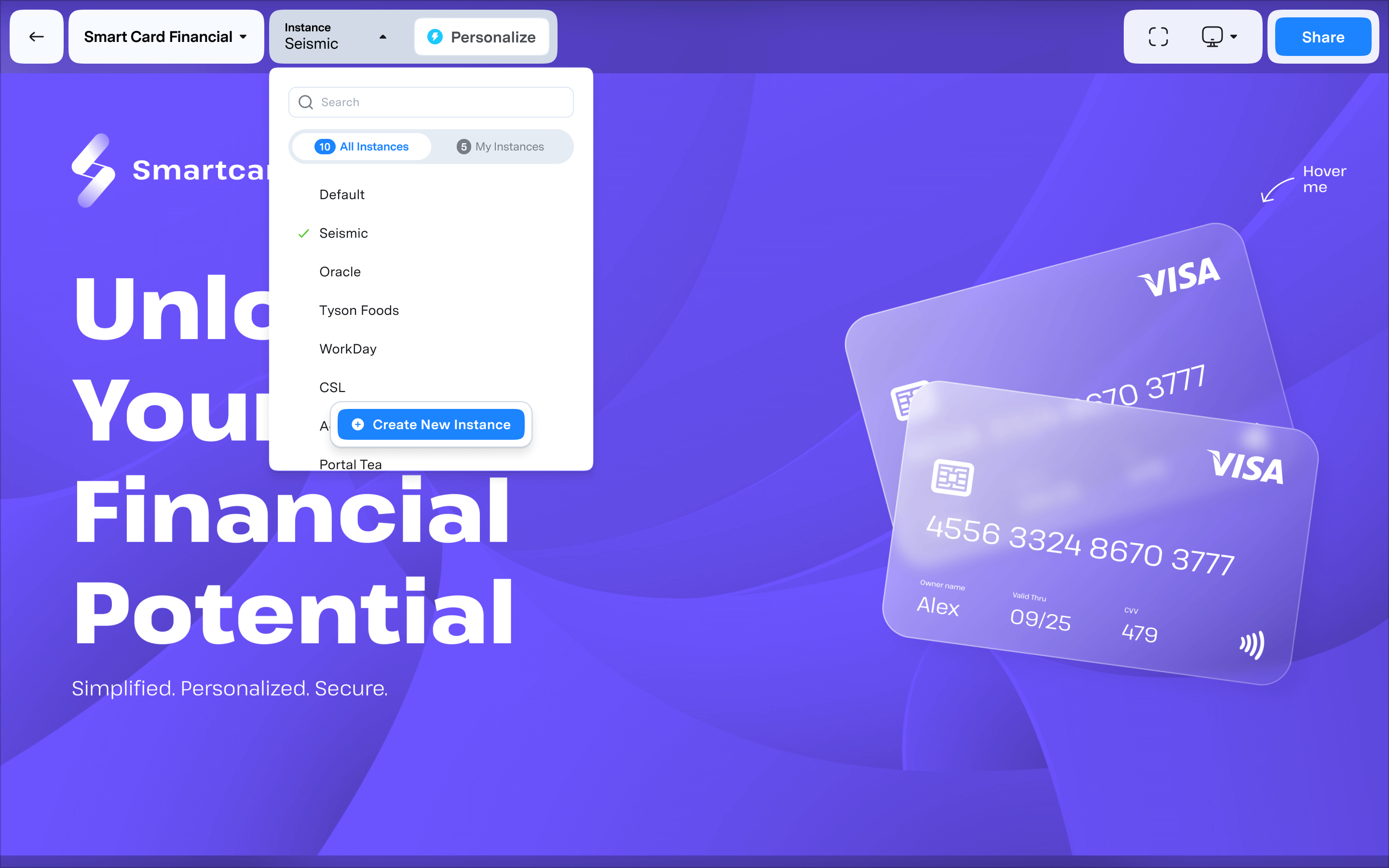 The Personalize CTA is now contextual to the instance name.