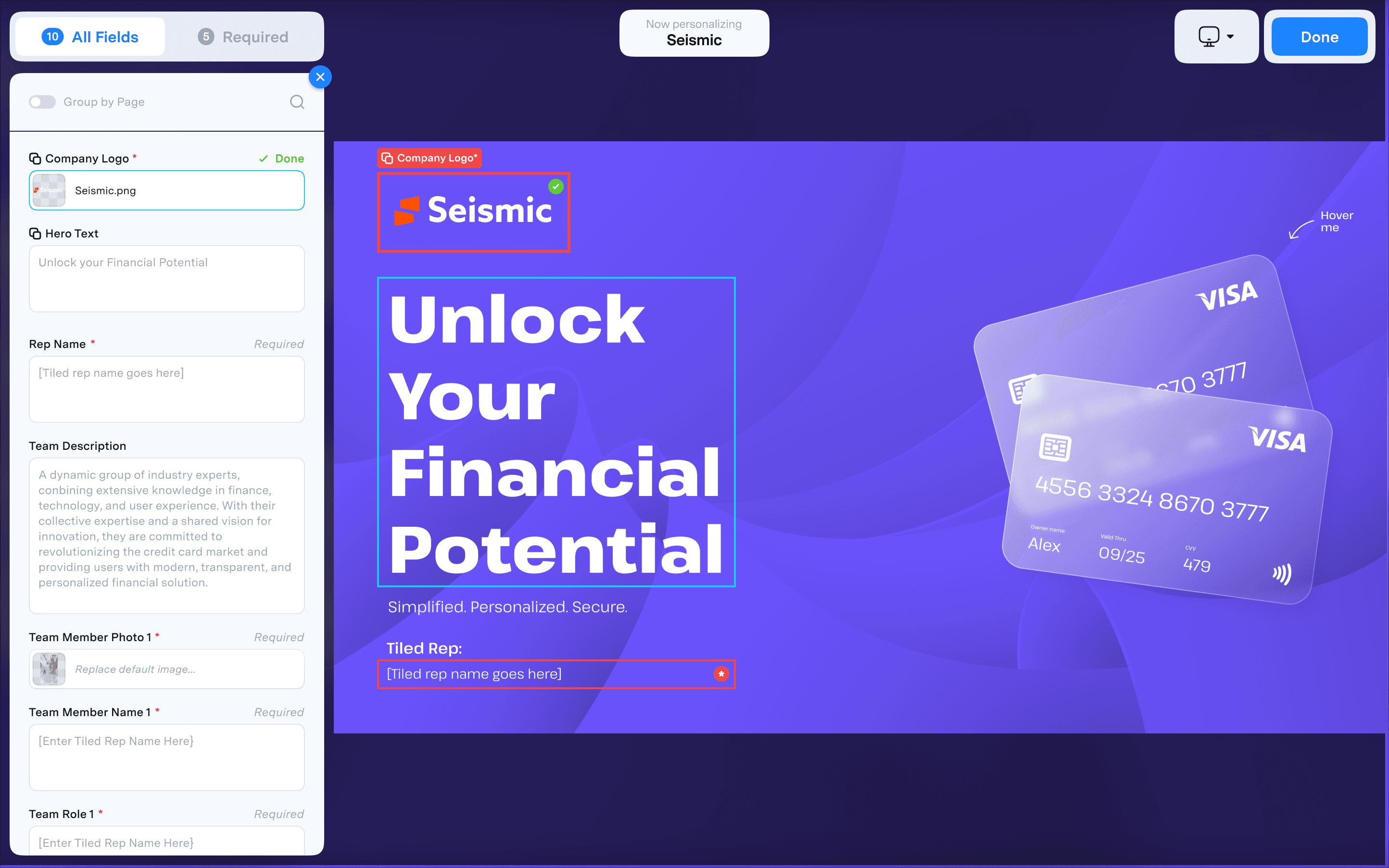 Viewer personalization had been one of Tiled's key differentiators since its introduction. The feature allowed sales teams to customize Microapps for specific prospects, turning generic presentations into tailored experiences. Adoption was strong among the customers who used it, but the original flow had been designed by a junior team with limited resources and no formal research process. It was built almost entirely on assumptions.