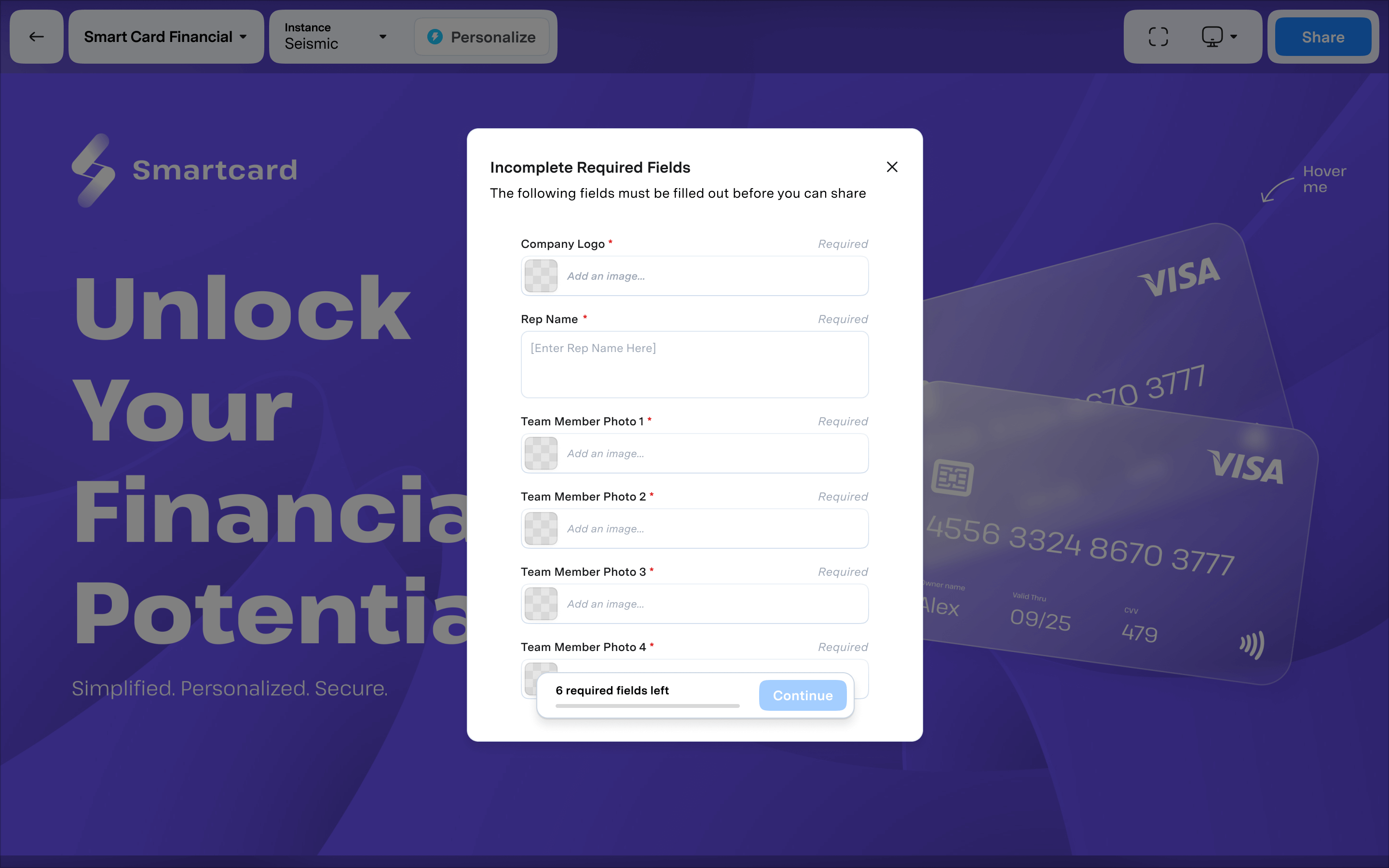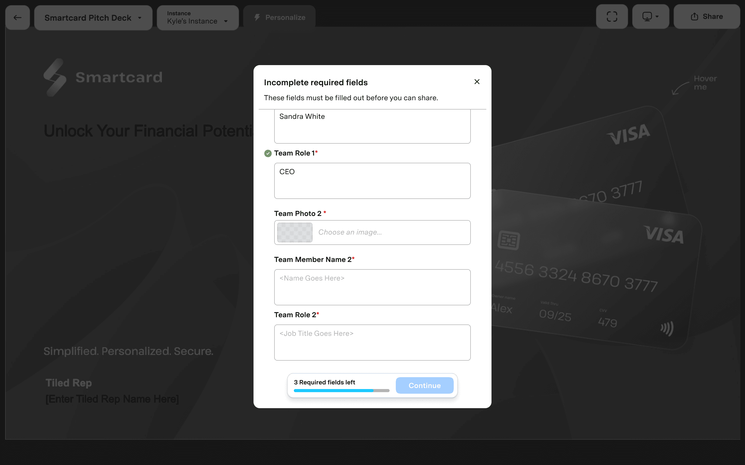 To speed up sharing, we’ll surface any remaining required fields in one modal that appears when users click the Share button.