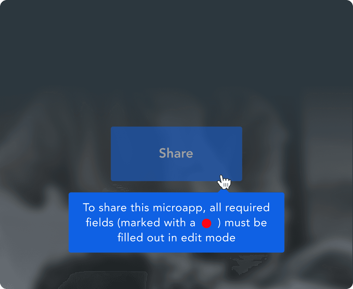 A business user cannot share a personalized microapp until they've satisfied all required fields – and there is no easy way find those fields.