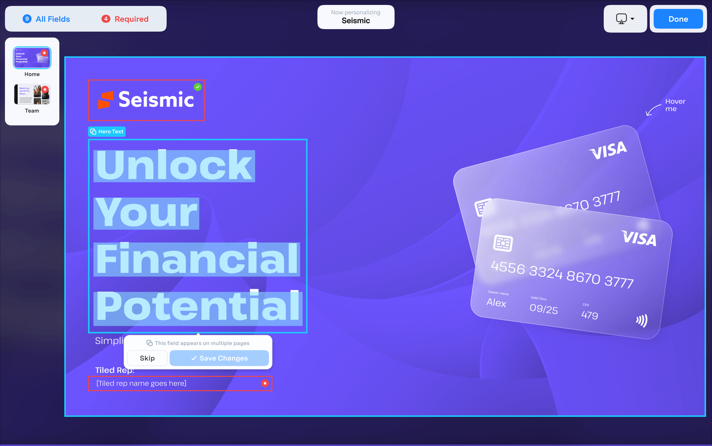 To streamline the personalization workflow, a contextual Helper Tooltip could appear when a personalizable field is selected inline. This could enable quick, intuative navigation from field to field