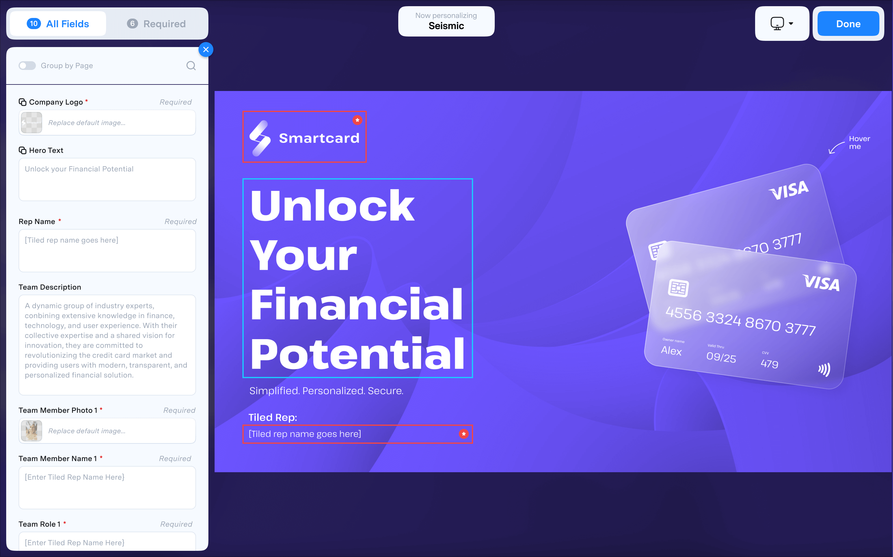 Filtering your personalizable fields down to the ones that are required for sharing.